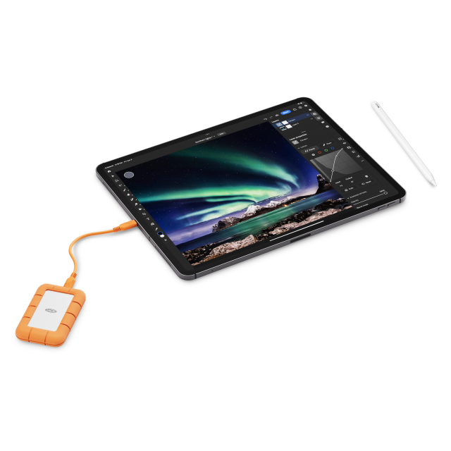 LaCie Rugged Mini SSD přináší rychlost, odolnost a bezproblémové připojení pro kreativce na cestách. S kompatibilitou USB 40 Gbps a Thunderbolt 4 dosahuje rychlosti čtení až 2000 MB/s, což zajišťuje rychlé přenosy a výkon odolný vůči budoucnosti.
