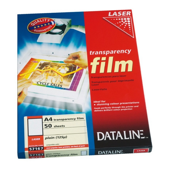 Fólie pro zpětné projektory potisknutelná v plnobarevných laserových tiskárnách. Má zaváděcí proužek na kratší straně. Antistatická vrstva zajišťuje bezproblémový průchod tiskárnou. Síla 125 mikronů.