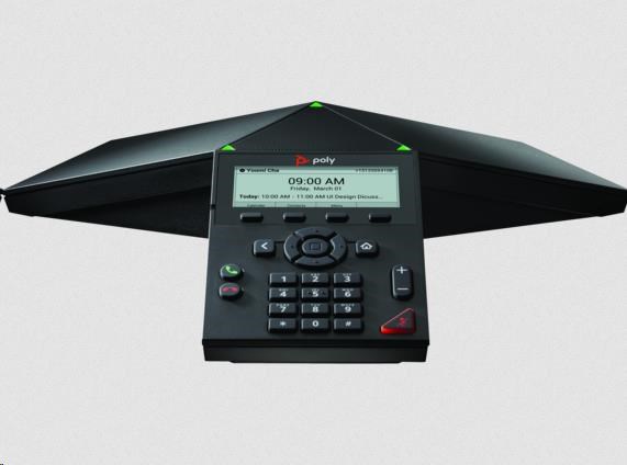 Funkce telefonování a zpracování hovorůV balíčku se softwarem Polycom UC: Přístup k firemním adresářům přes LDAP; Časovač hovoru a podržení hovoru; Přepojení, podržení, odklonění (přesměrování), zaparkování, vyzvednutí hovoru; Informace o volaném, volajícím a připojeném účastníkovi; Různé zpracování příchozích hovorů / čekání na hovor; Funkce Nerušit; Místní třísměrné audiokonference; Místní konfigurovatelná mapa číslic / plán vytáčení; Vzhled sdíleného volání / přemostěné linky; Vizuální správa konferencí; Až 3 linky (maximálně jeden Skype pro firmy a Microsoft Teams); Lineární zapojení až čtyř zařízení; Rychlá volba jedním dotykem, opakovaná volba a připojení ke schůzce